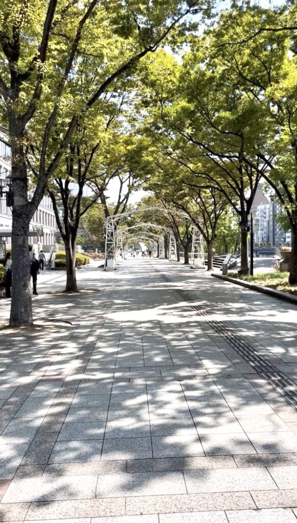 Osaka Metro御堂筋線「淀屋橋」駅から土佐堀川沿いの道を、ベビーカーを押して歩くこと約10分。