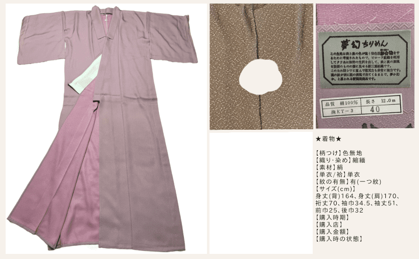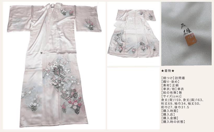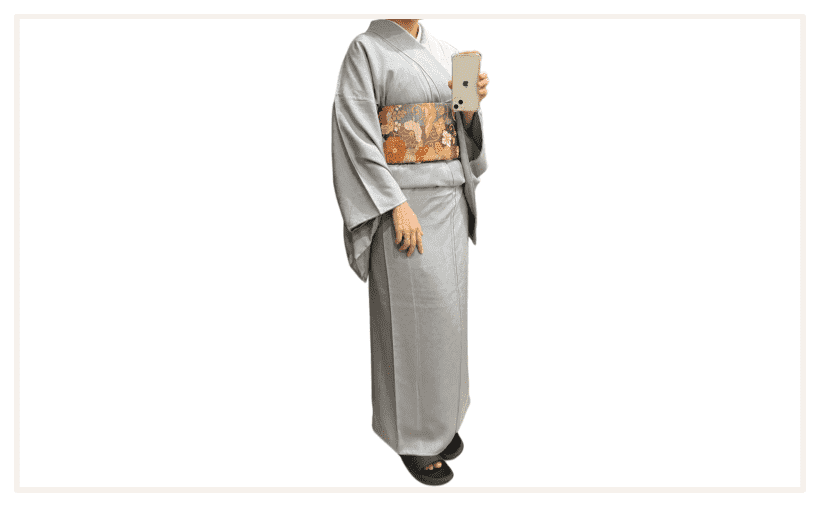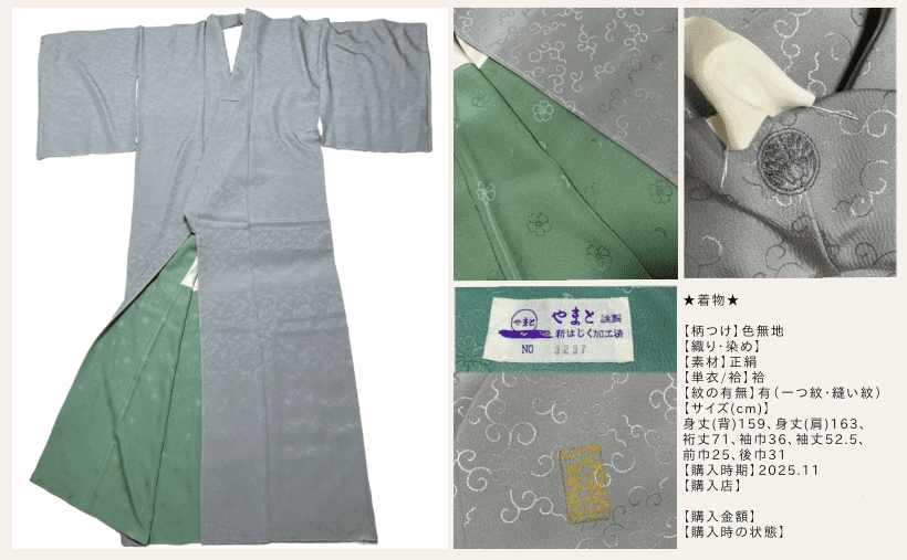 さてこちら、手持ち着物の中で唯一自分で購入したリサイクル着物【色無地グレー】です。