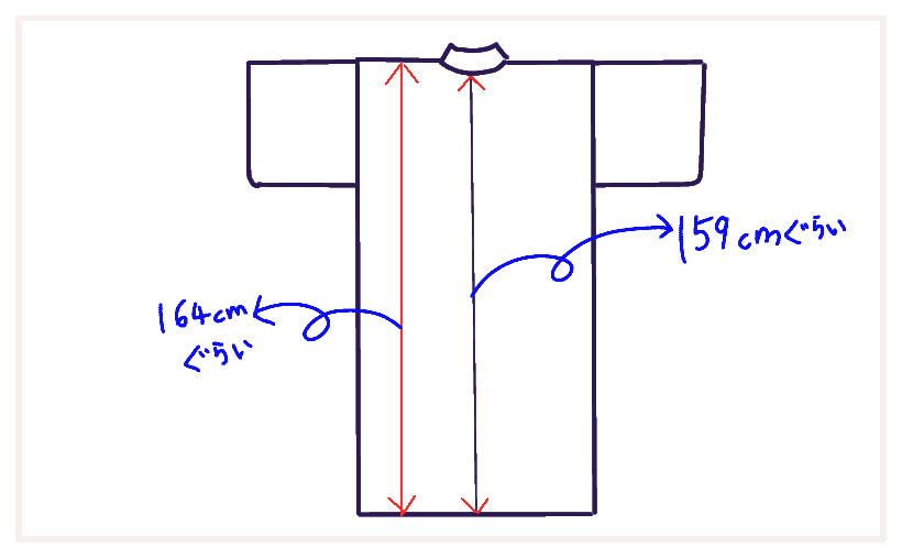 わたしの「ええ感じ」のサイズは【身丈(背から)159cm前後、身丈(肩から)164cm前後、裄丈70cm〜71cm】ということか。