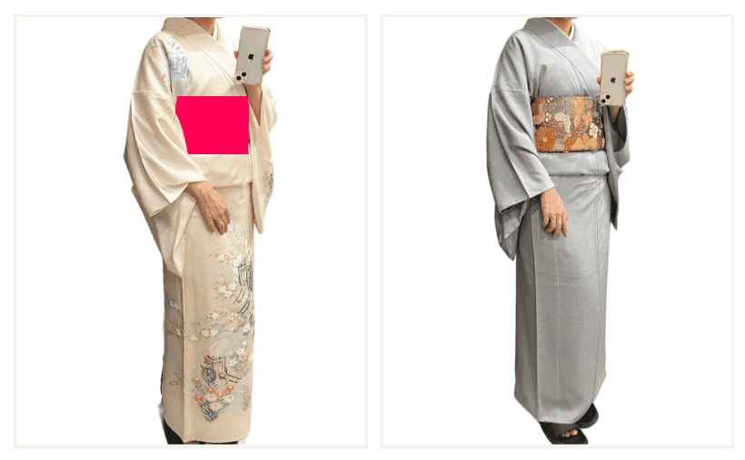 【色無地グレー】は裄丈71cmで、【御所車】の裄丈は69cm。